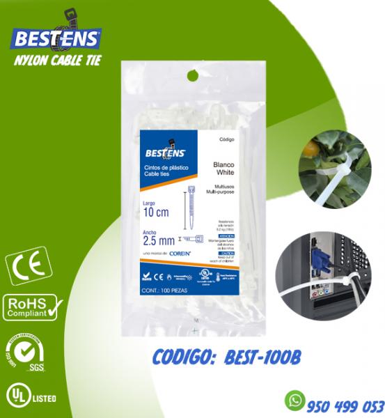 CINTILLO DE NYLON 6.6 (UL) AMARRE 100X2.5MM (10CM) 4´´ BLANCO 100PZ