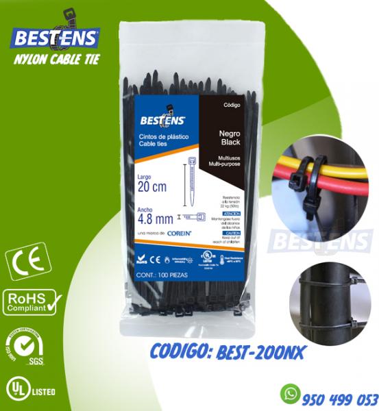 CINTILLO DE NYLON 6.6 (UL) AMARRE 200X4.8MM (20CM) 8´´ NEGRO X 100PZ...