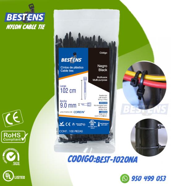 CINTILLO DE NYLON 6.6 (UL) AMARRE 1020X9.0MM (100.20CM) NEGRO X 100PZ...