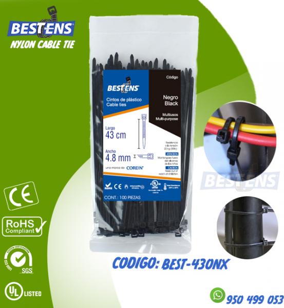 CINTILLO DE NYLON 6.6 (UL) AMARRE 430X4.8MM (43CM) 17´´ NEGRO X 100P...