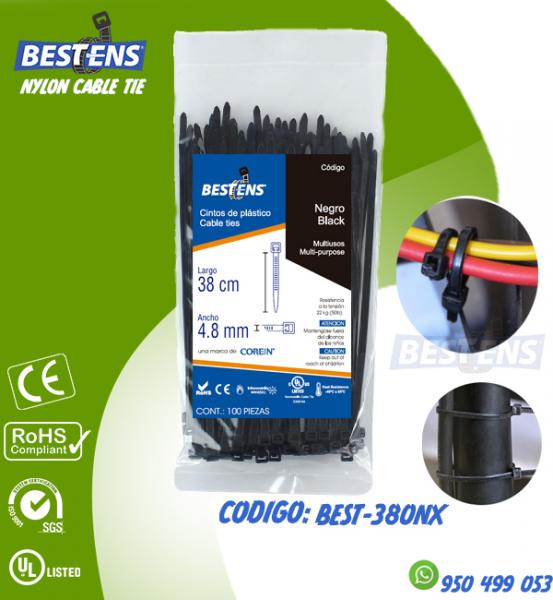 CINTILLO DE NYLON 6.6 (UL) AMARRE 380X4.8MM (38CM) 15´´ NEGRO X 100P...