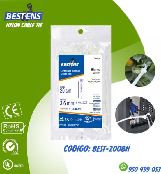 CINTILLO DE NYLON 6.6 (UL) AMARRE 200X2.5MM (12CM) 8´´ BLANCO X 100P...