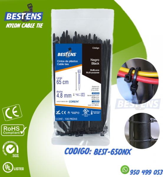 CINTILLO DE NYLON 6.6 (UL) AMARRE 650X4.8MM (65CM) NEGRO X 100PZ