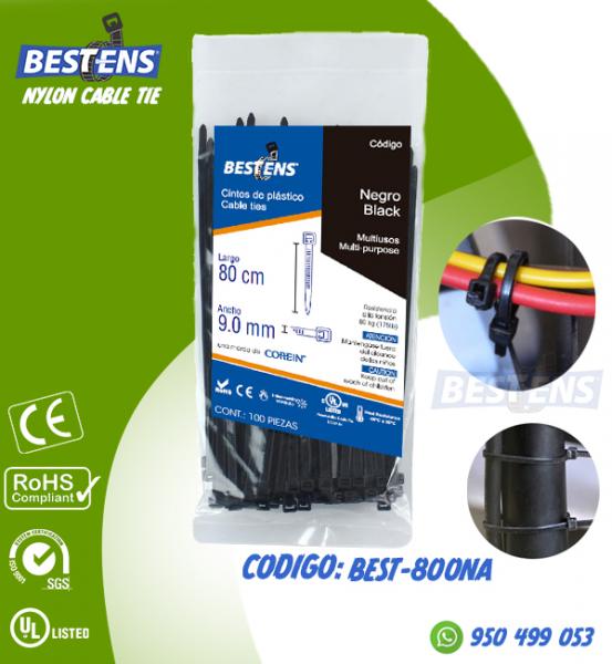 CINTILLO DE NYLON 6.6 (UL) AMARRE 800X9.0MM (80CM) NEGRO X 100PZ