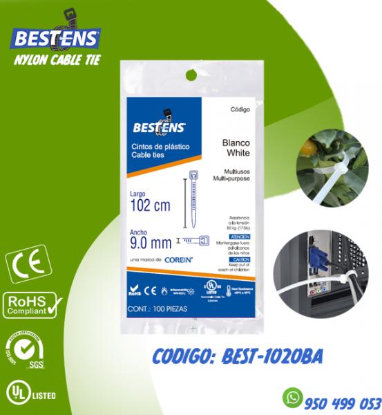 CINTILLO DE NYLON 6.6 (UL) AMARRE 1020X9.0MM (100.20CM) BLANCO X 100...