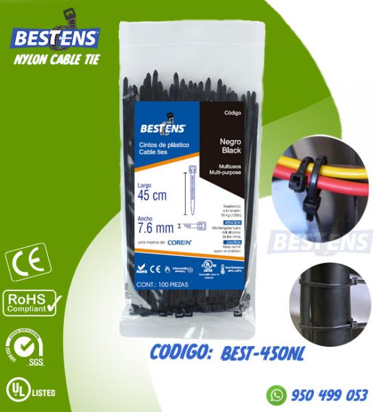 CINTILLO DE NYLON 6.6 (UL) AMARRE 450X7.6MM (45CM) 17 3/4´´ NEGRO X...