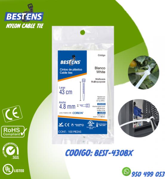 CINTILLO DE NYLON 6.6 (UL) AMARRE 430X4.8MM (43CM) 17´´ BLANCO X 100...