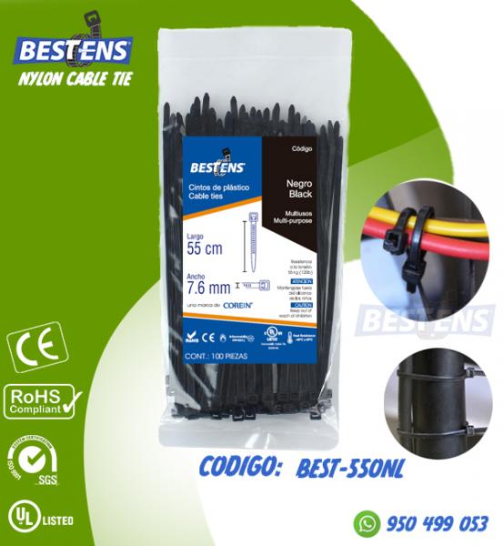 CINTILLO DE NYLON 6.6 (UL) AMARRE 550X7.6MM (55CM) 21 1/16´´ NEGRO X...