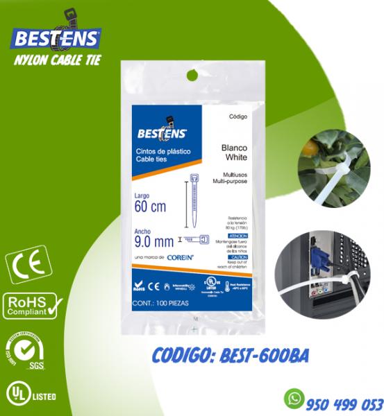 CINTILLO DE NYLON 6.6 (UL) AMARRE 600X9.0MM (60CM) 23 5/8´´ BLANCO ...