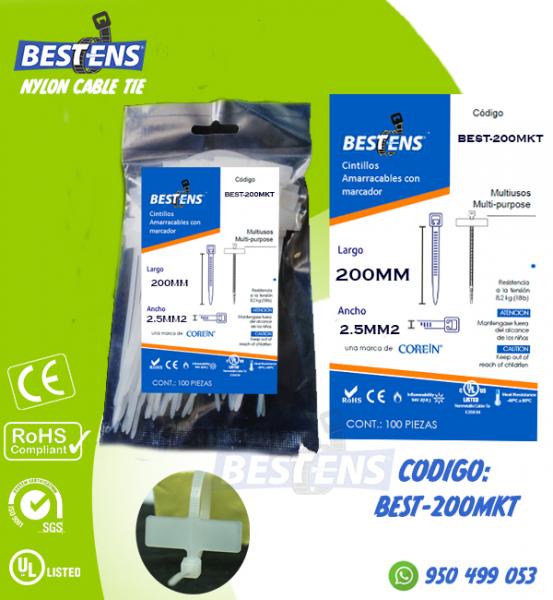 CINTILLO DE NYLON AMARRE (CON MARCADOR ) NATURAL 200X2.5MM 8´´ X 100...