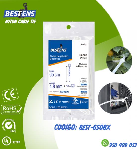 CINTILLO DE NYLON 6.6 (UL) AMARRE 650X4.8MM (65CM) BLANCO X 100PZ