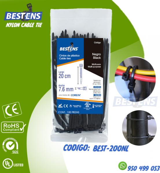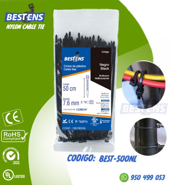 CINTILLO DE NYLON 6.6 (UL) AMARRE 500X7.6MM (50CM) 19 16/11´´ NEGRO ...