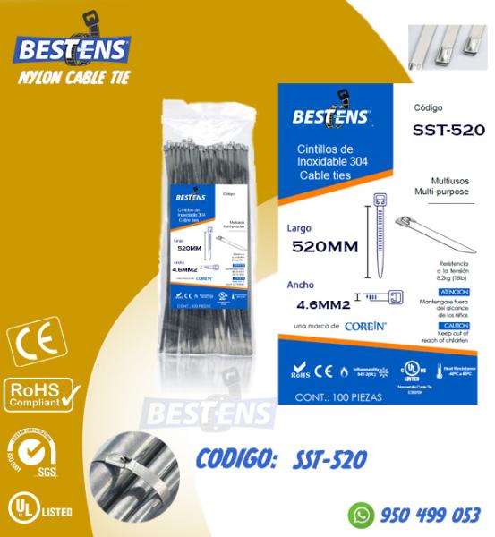CINTILLO DE AMARRE DE ACERO INOXIDABLE 304 ( 520X4.6MM2 ) X 100PCS