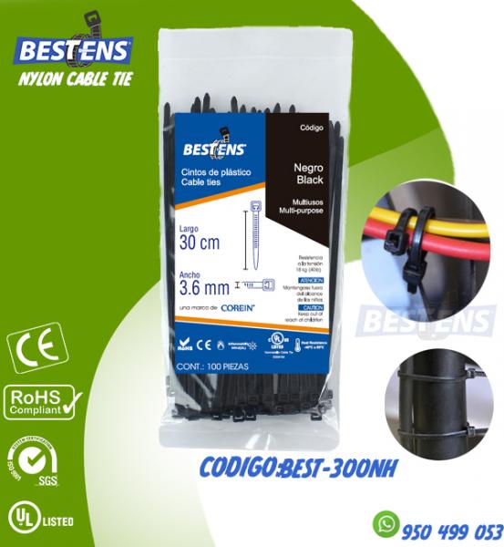 CINTILLO DE NYLON 6.6 (UL) AMARRE 300X3.6MM (30CM) 11 8/5´´ NEGRO X ...