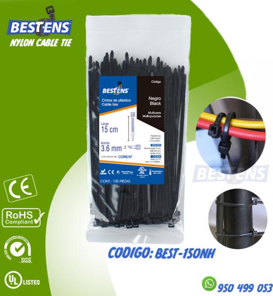 CINTILLO DE NYLON 6.6 (UL) AMARRE 150X3.6MM (12CM) 6´´ NEGRO X 100PZ...