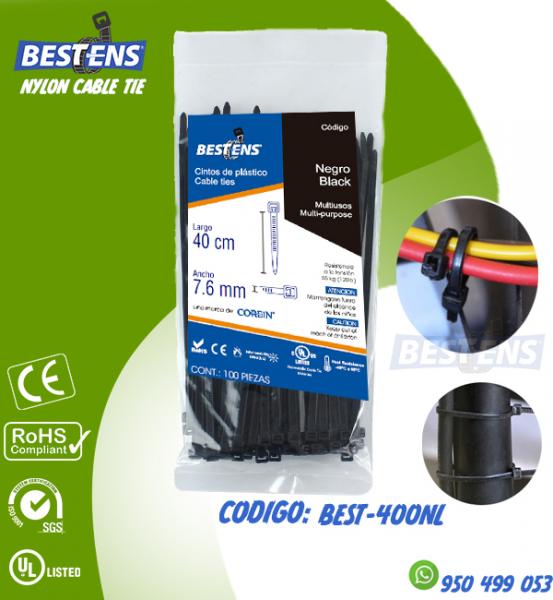 CINTILLO DE NYLON 6.6 (UL) AMARRE 400X7.6MM (40CM) 17 3/4´´ NEGRO X...