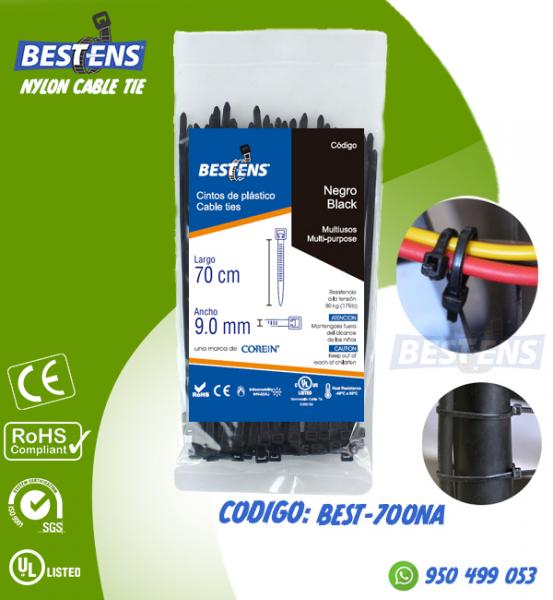 CINTILLO DE NYLON 6.6 (UL) AMARRE 700X9.0MM (70CM) 27 1/2´´ NEGRO X...