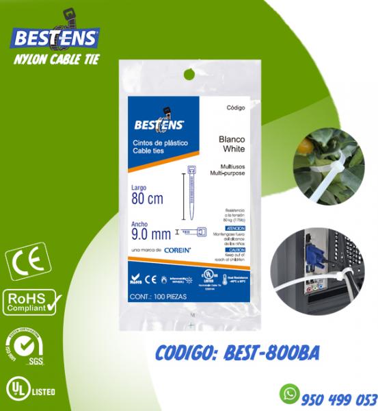 CINTILLO DE NYLON 6.6 (UL) AMARRE 800X9.0MM (80CM) BLANCO X 100PZ