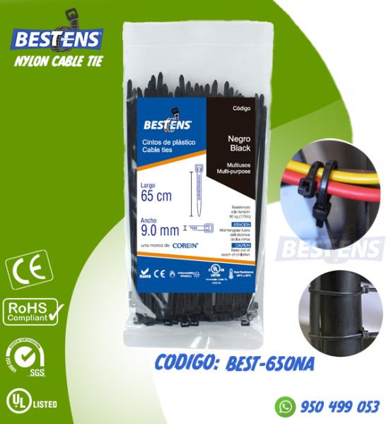 CINTILLO DE NYLON 6.6 (UL) AMARRE 650X9.0MM (65CM) NEGRO X 100PZ