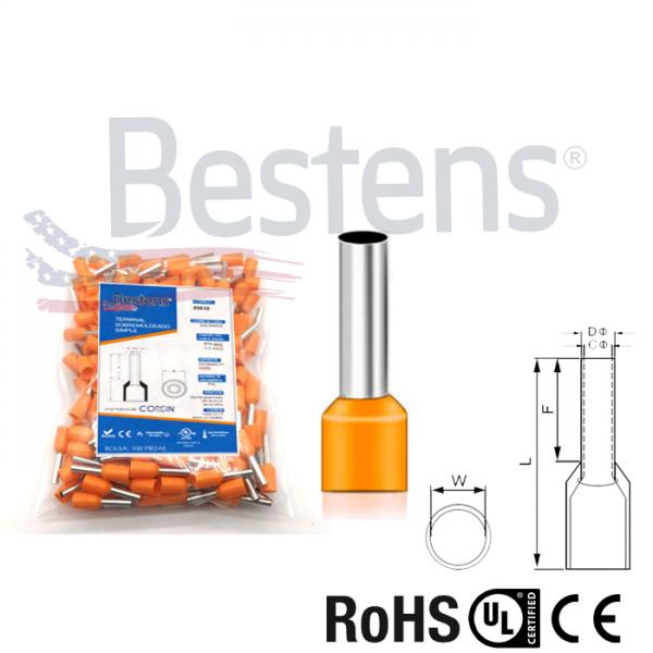 TERMINAL SOBREMOLDEADO TUBULAR NARANJA (DIM. 10.0) #22 AWG (0.5MM2) X...