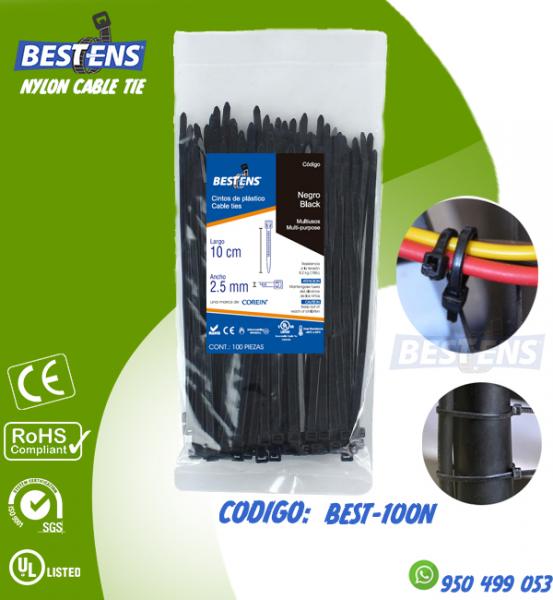 CINTILLO DE NYLON 6.6 (UL) AMARRE 100X2.5MM (10CM) 4´´ NEGRO 100PZ