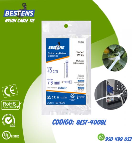 CINTILLO DE NYLON 6.6 (UL) AMARRE 400X7.6MM (40CM) 17 3/4´´ BLANCO ...